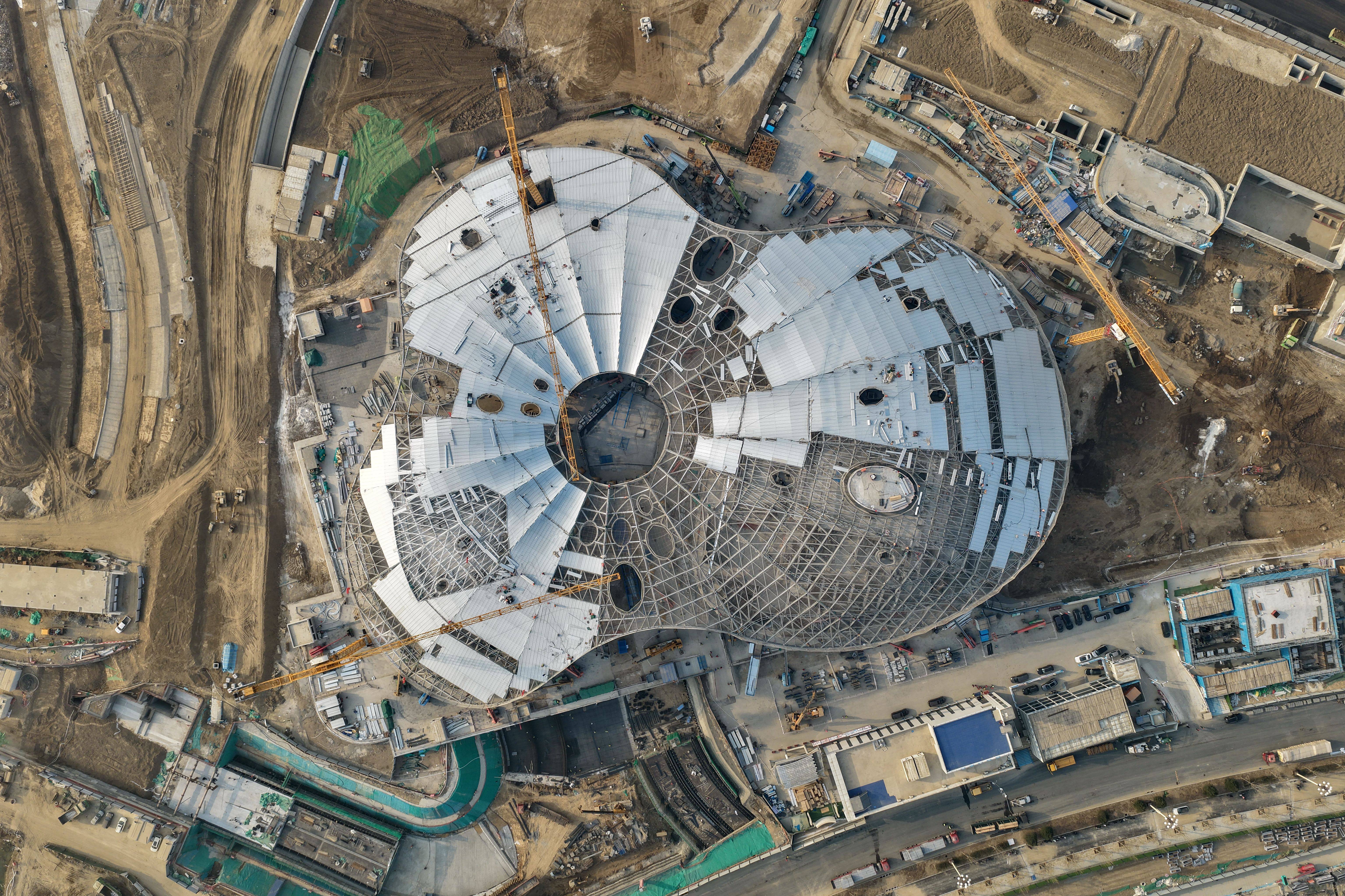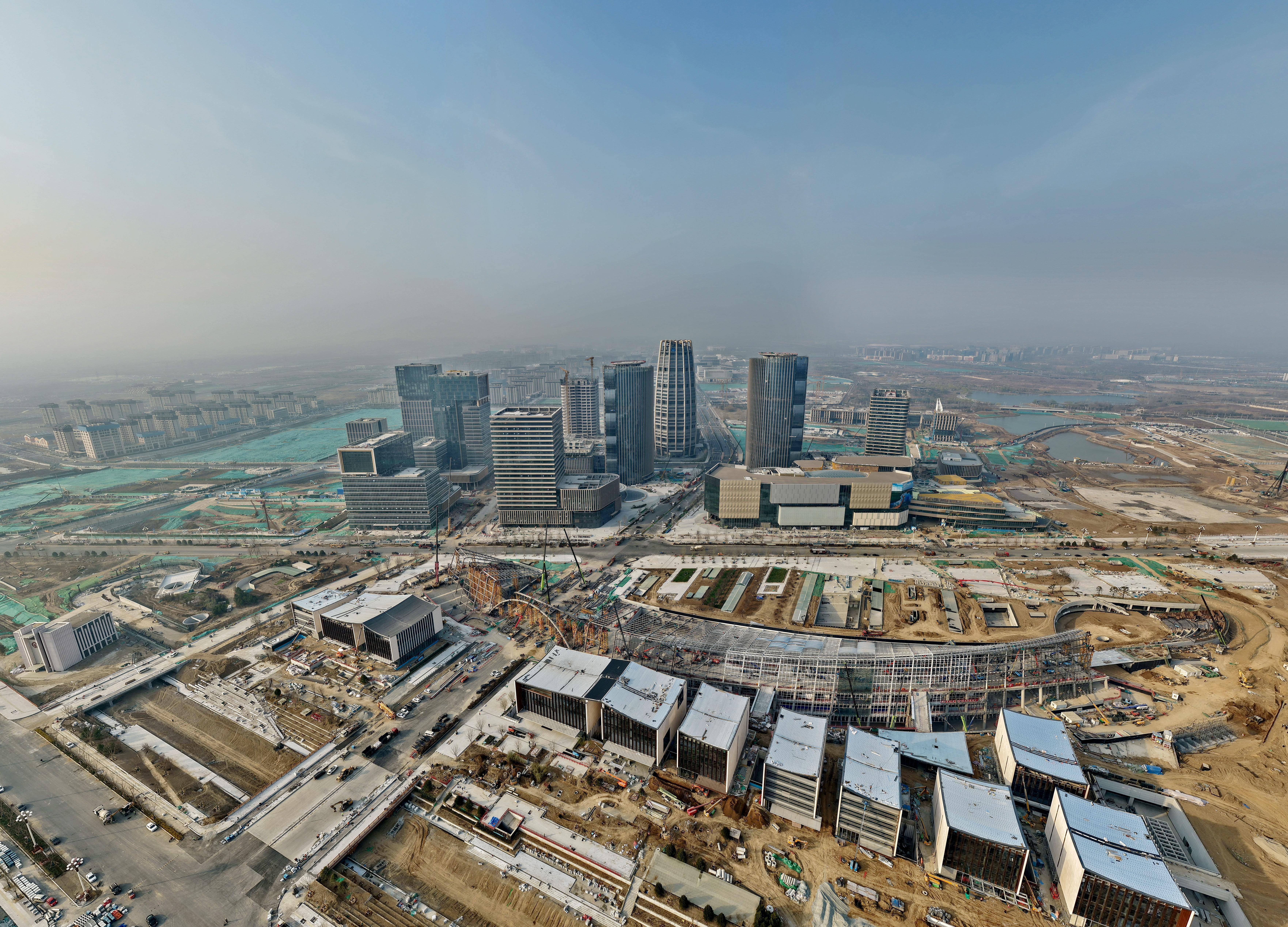 雄安新区城市文化广场建设现场(3月25日摄,无人机照片)。新华社记者 牟宇 摄