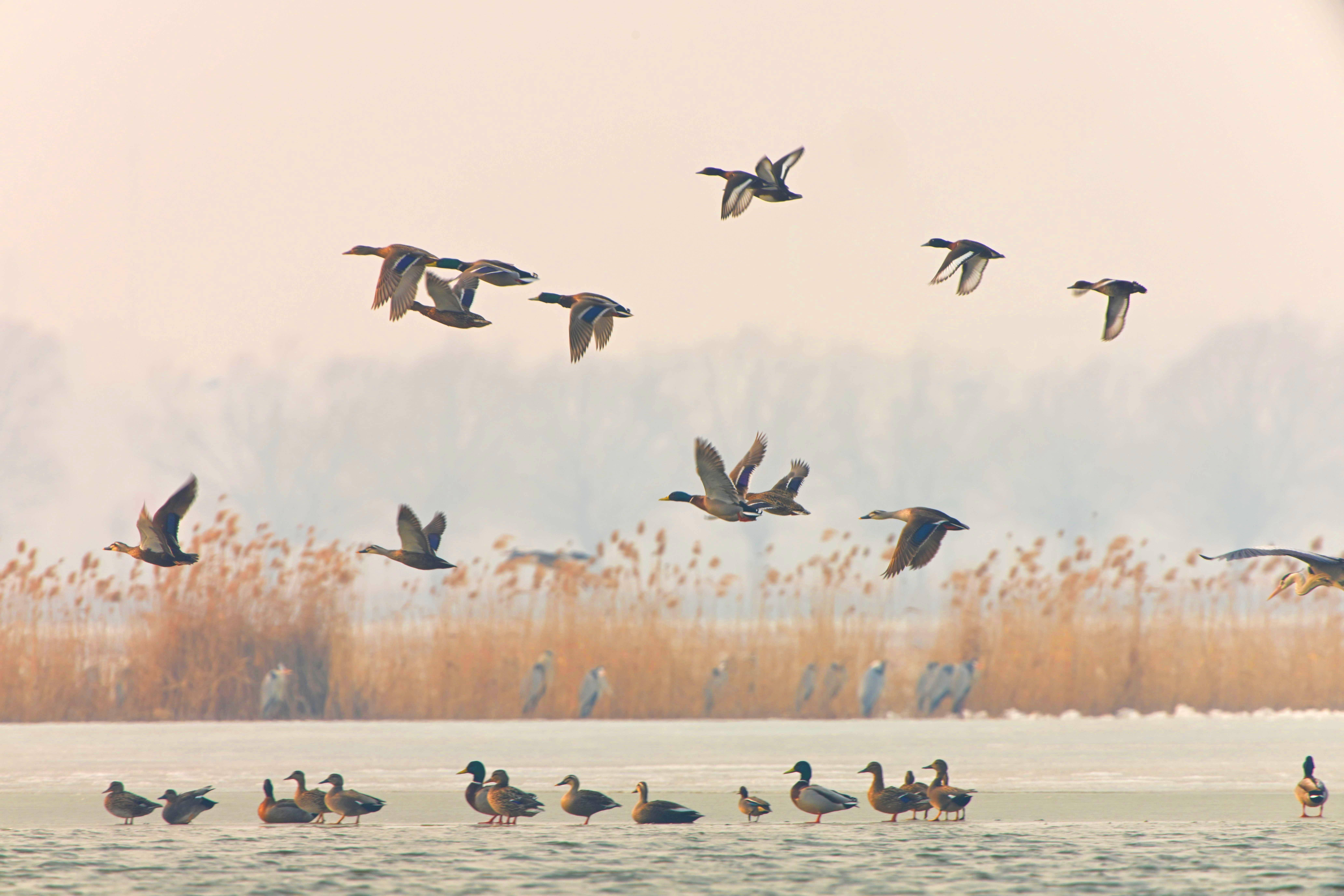 这是3月17日在黑龙江省齐齐哈尔市拍摄的野鸭群。新华社发(王勇刚摄)如果说