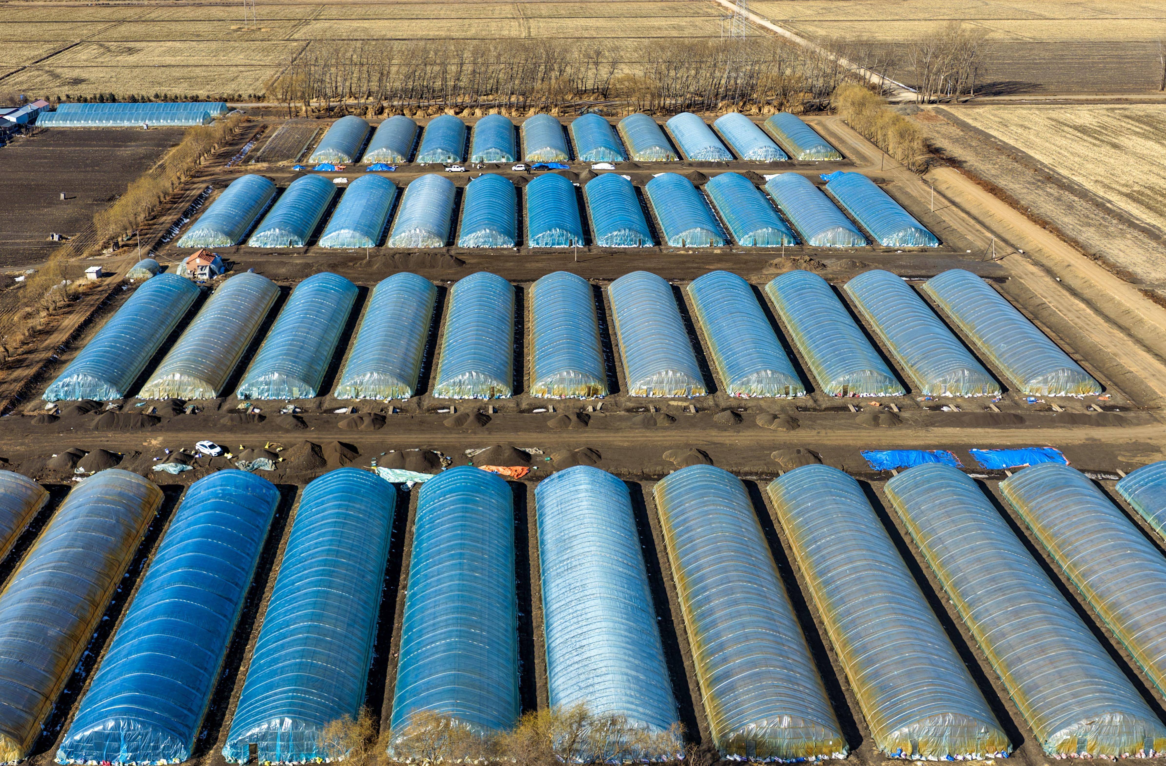 3月17日,黑龙江北大荒农业股份友谊分公司第二管理区,种植户在水稻育苗园区进行育苗准备(无人机照片)。新华社发(徐宏宇摄)