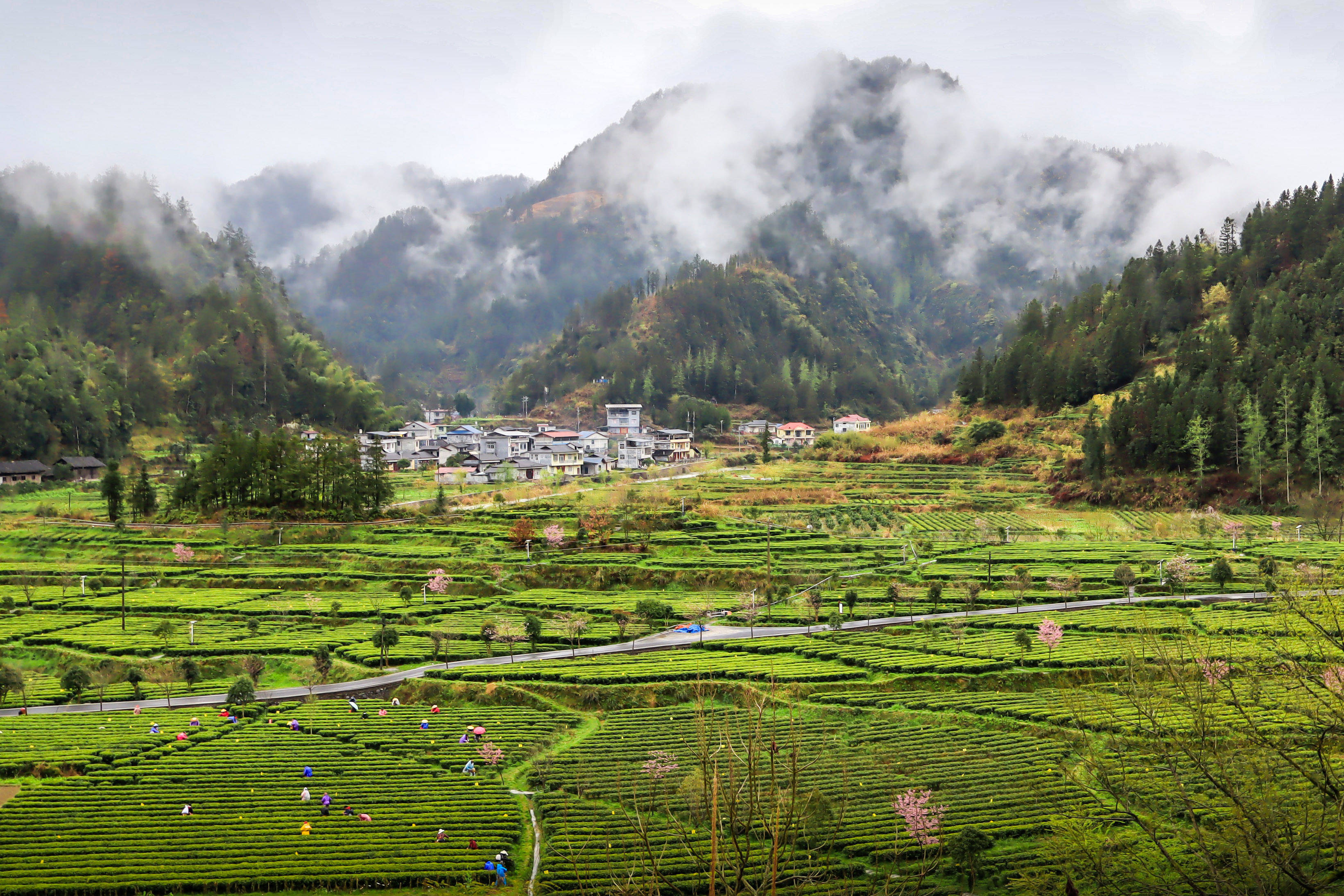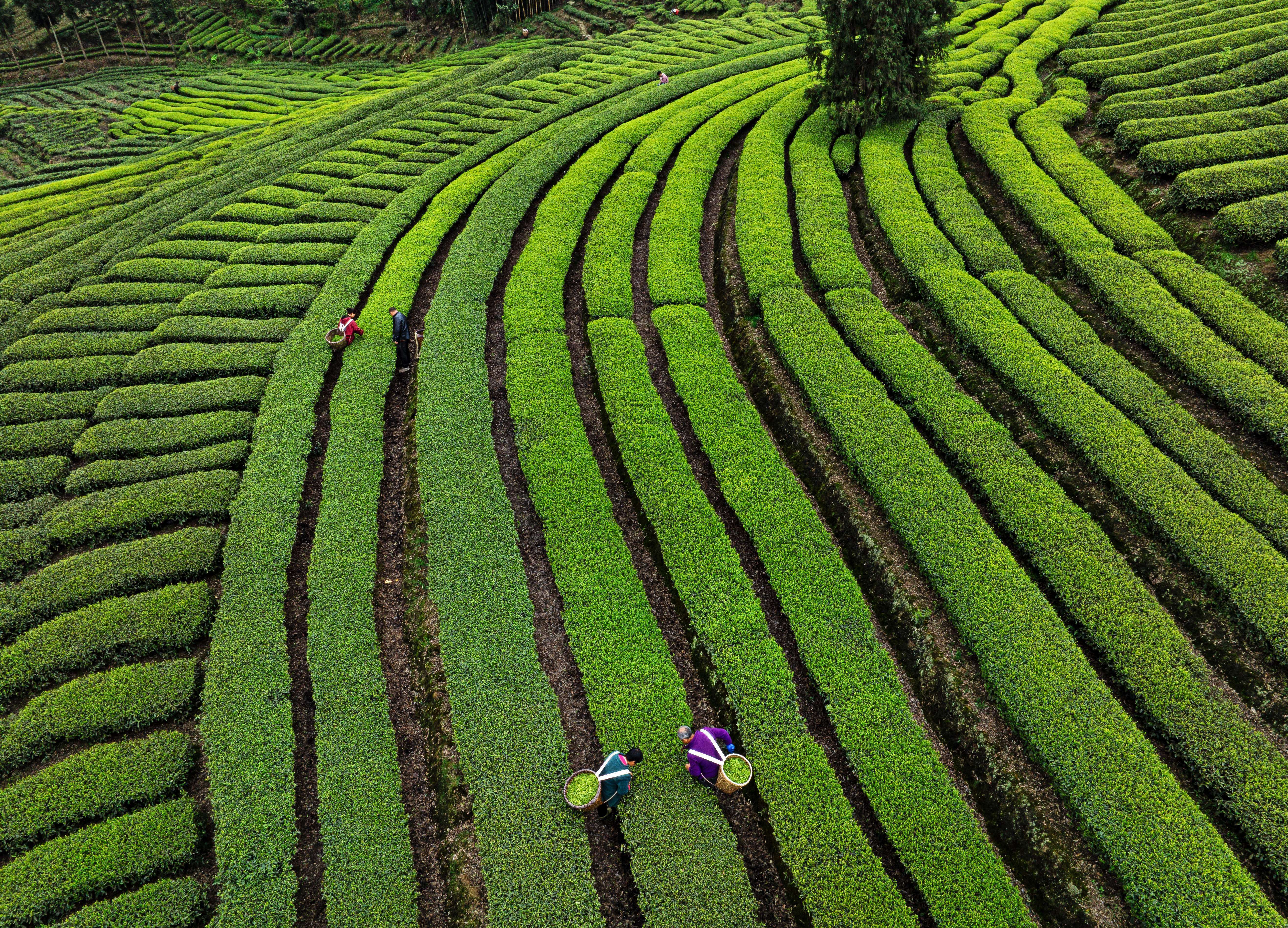 3月15日,四川省乐山市沐川县利店镇,茶农在茶园采摘春茶。新华社发(孔胜摄)春在树上