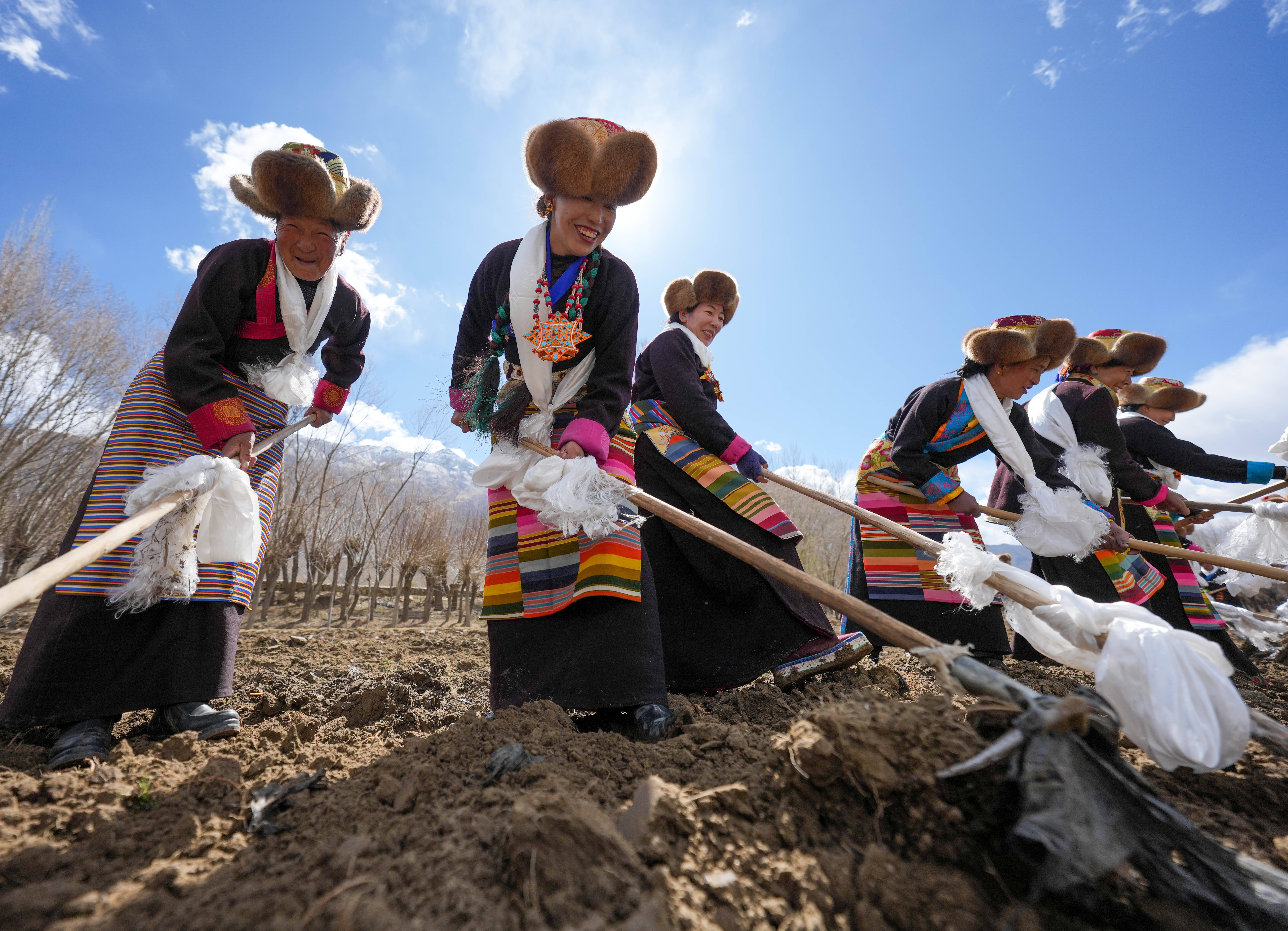 3月16日,西藏山南市结巴乡结巴村村民身着盛装,举行春耕仪式。新华社记者 晋美多吉 摄