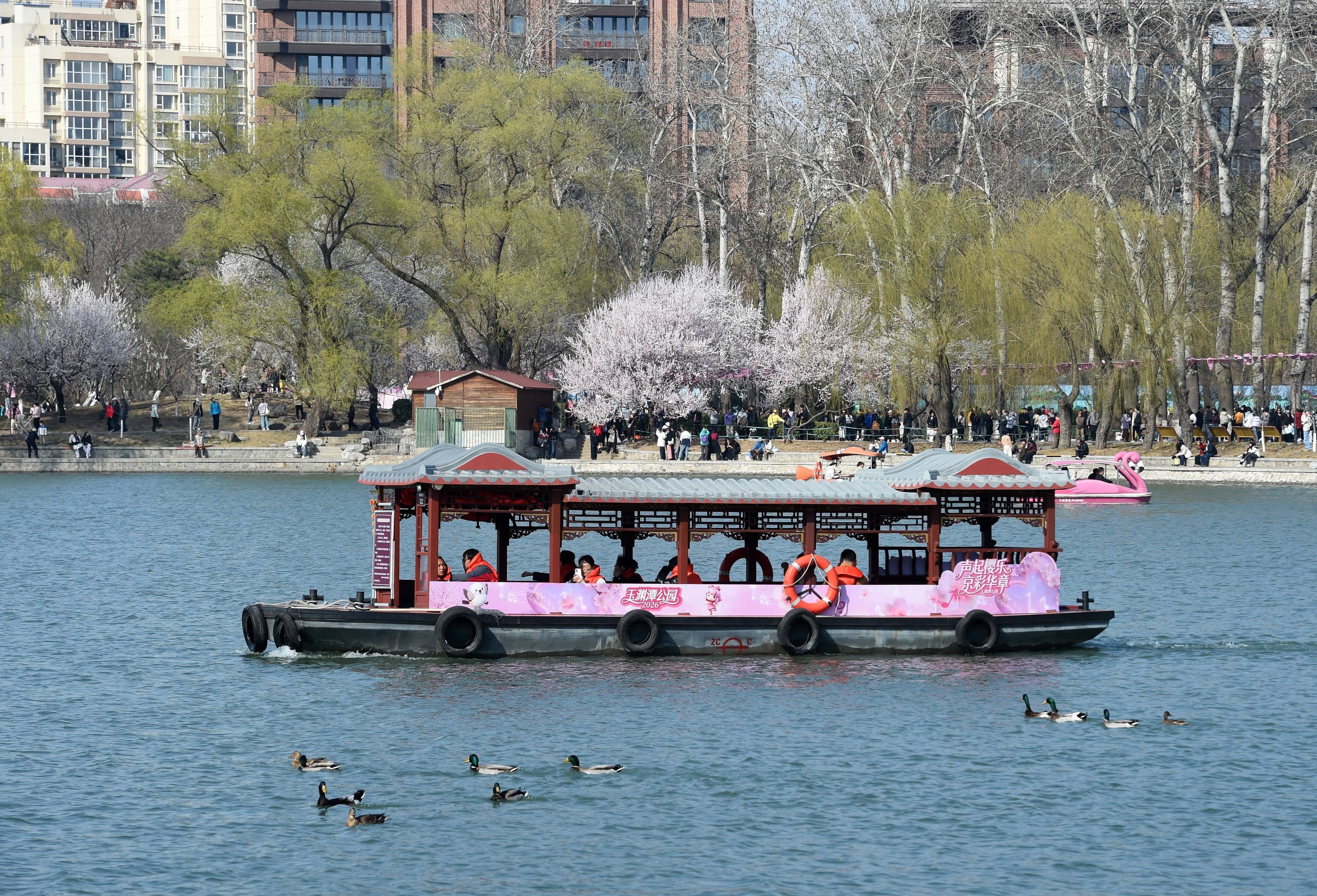 3月19日,游人在北京玉渊潭公园赏春。新华社记者 罗晓光 摄