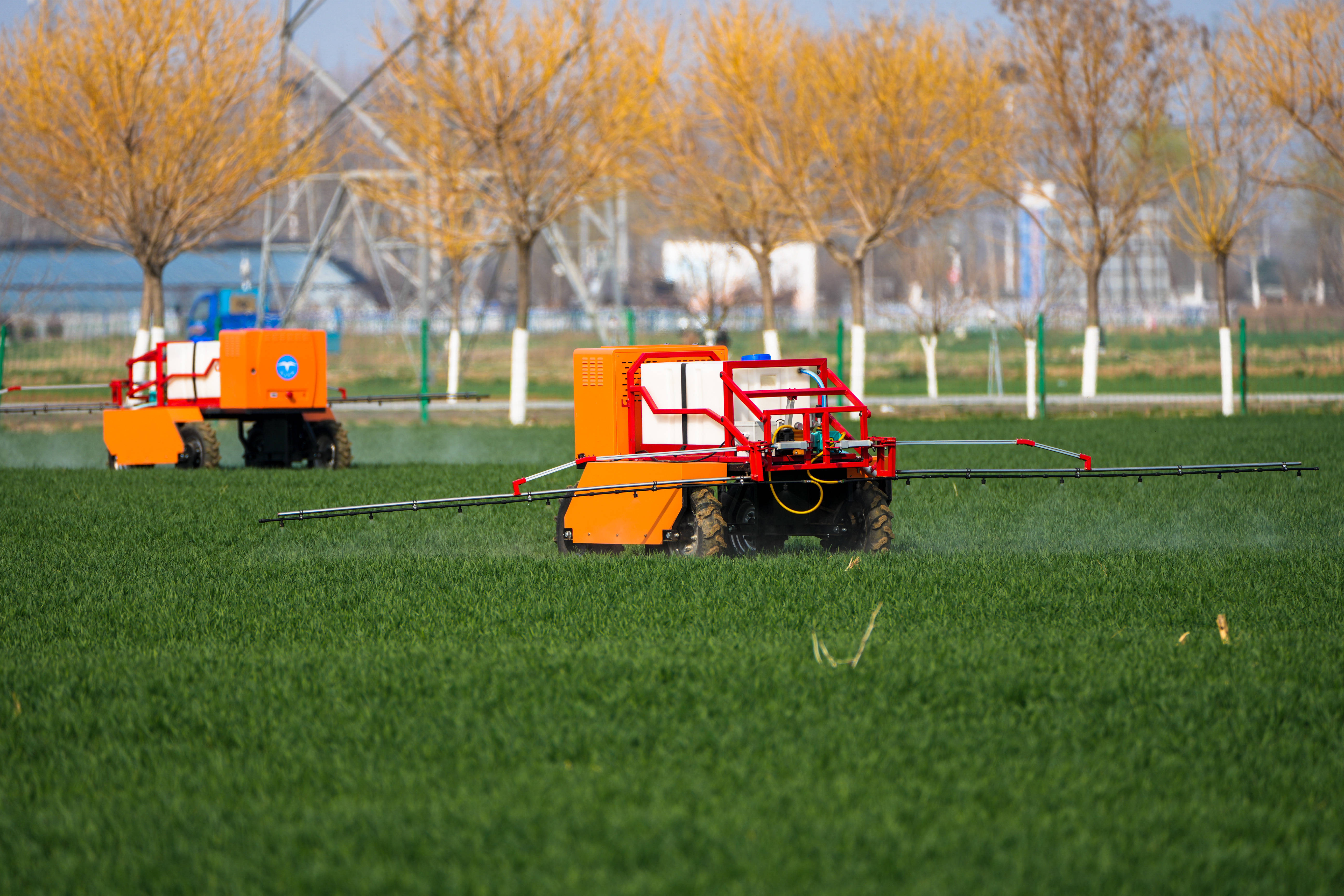 3月9日,喷药机器人在田间喷洒农药。新华社记者 朱峥 摄