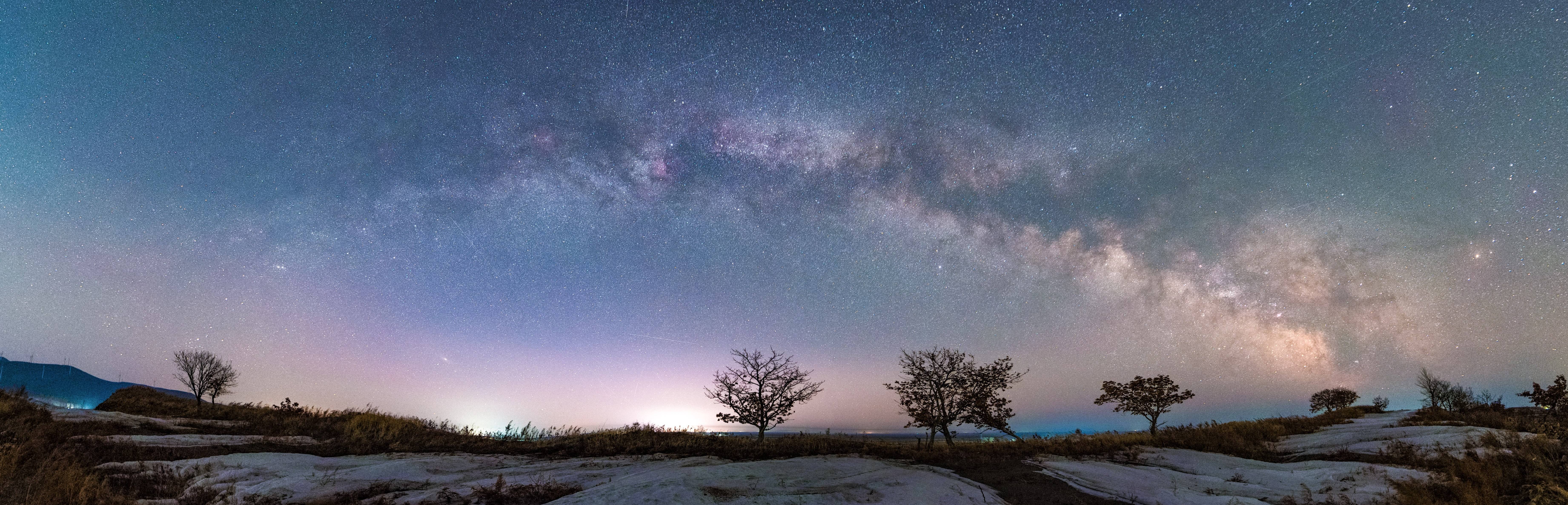这是3月24日在黑龙江省富锦市拍摄的“银河拱桥”(拼接照片)。新华社发(曲玉宝摄)
