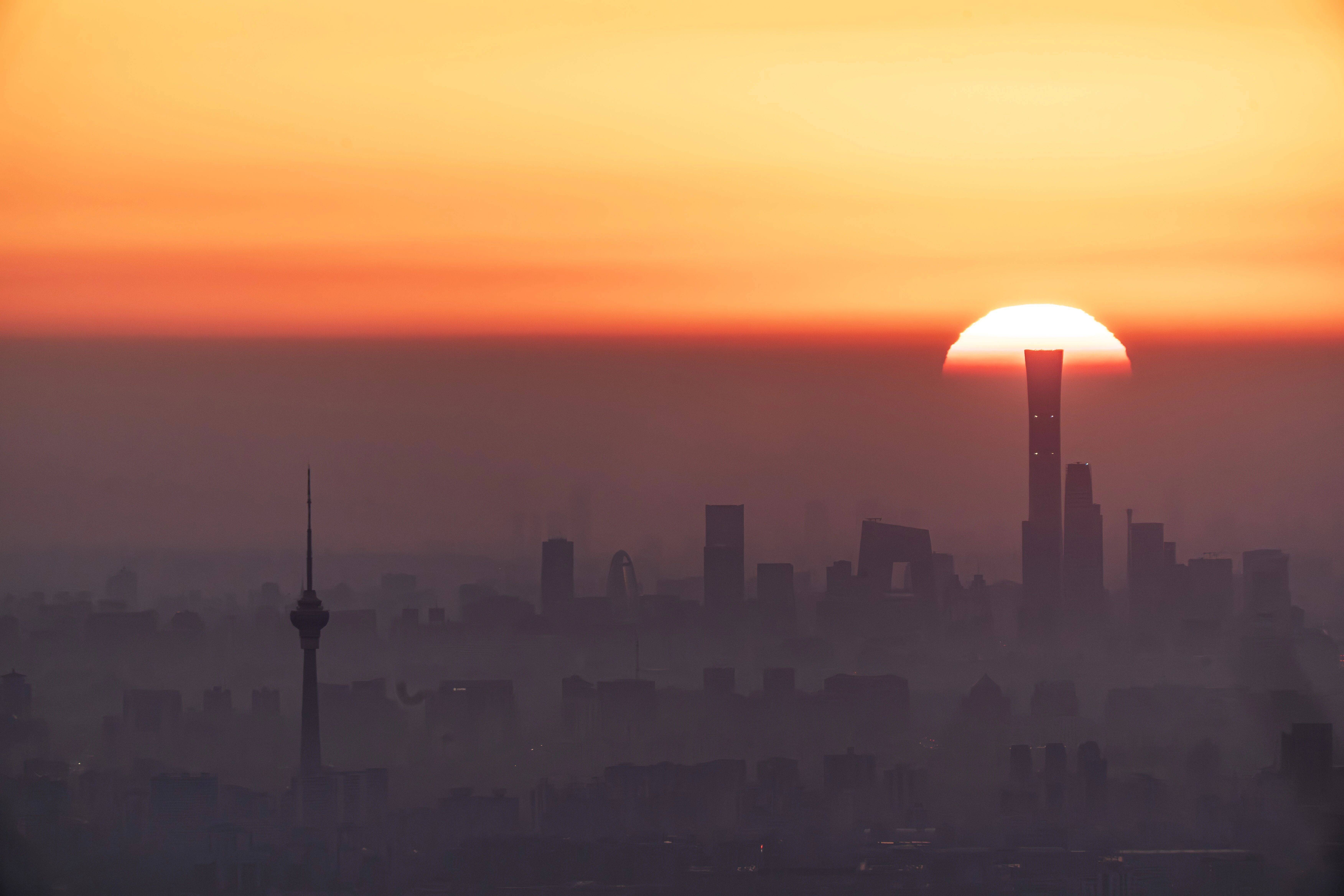 3月20日在北京定都阁附近拍摄的日出。新华社发(钟奕摄)