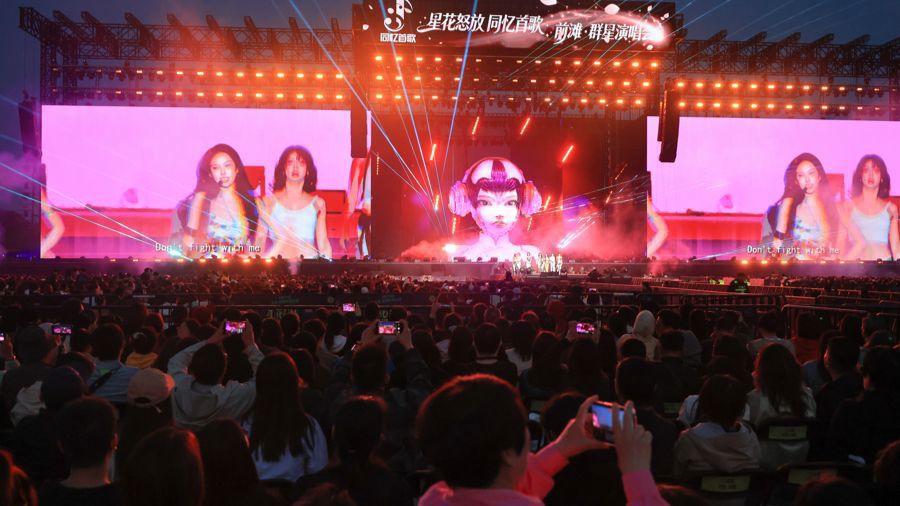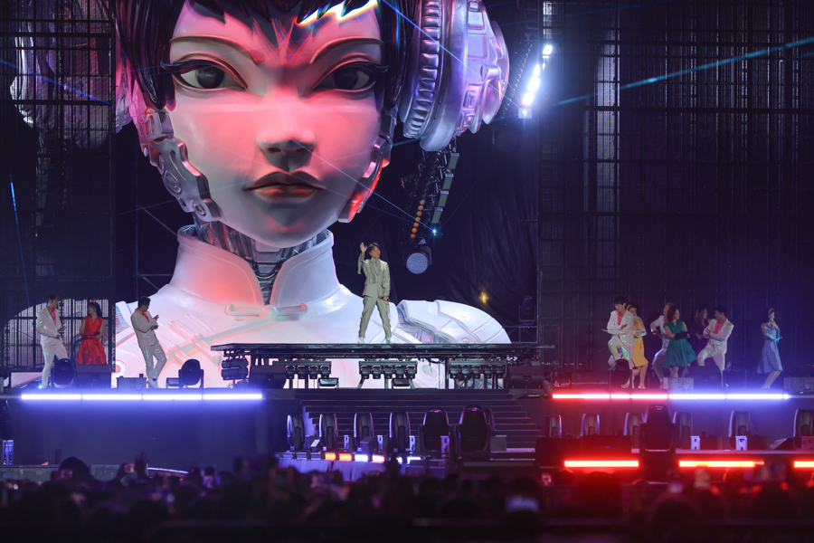 在舞台呈现方面,演出经典与科技交融。知名主持人、导演、制作人亚宁全程主持这场演唱会,昔日电视里的温暖嗓音化作黄浦江畔的情绪天籁。舞台正中央,一名“东方少女”——名为“小忆”的数字舞台智能体惊艳亮相。该形象由“同忆首歌”节目组联合顶尖AI实验室共同孵化,“她”在舞台中央打碟、唱歌、跳舞、主持,引导全场观众举起手中的荧光棒或手机,实现光影同频共振。