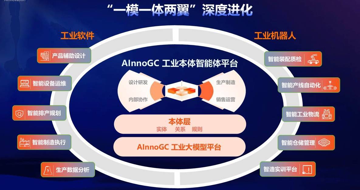 徐辉介绍,目前创新奇智以“一模一体两翼”为整体技术框架:以工业大模型为底座,以工业智能体平台为引擎,赋能工业软件和工业机器人两翼行业应用。