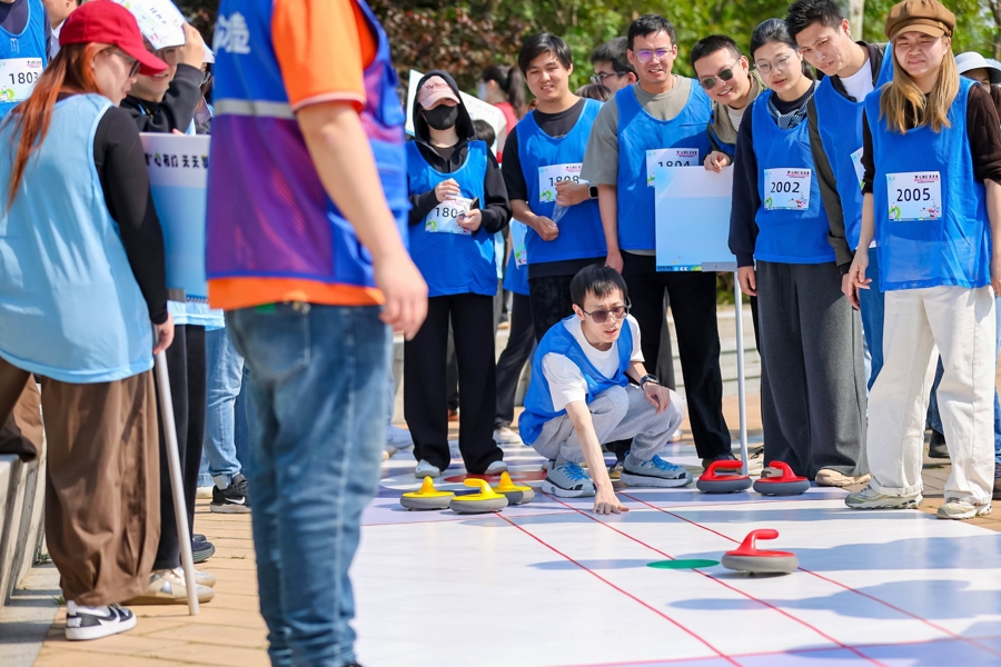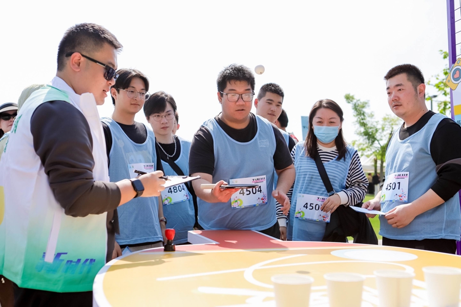 启动仪式后,现场人员共同体验了八段锦,体会全民健身的魅力。随后,趣味运动挑战火热开赛。“飞跃梦想”“迎篮而上”“合力搭建”“摸石过河”“活力冰壶”“趣味乒乓”六大项目各具特色,考验着各支队伍的默契与协作。各队相互打气、默契配合,现场气氛热烈而有序。“还是第一次玩冰壶,感觉蛮新奇的。平常工作都较忙,利用空余时间活动活动,有益于健康,希望以后多多举办。”白鹤镇的周先生和队友们一起研究旱地冰壶的推壶技巧。来自重固镇的蔡女士告诉记者:“我平时体育锻炼不多,这次是第一次参加体育类的活动。跟团队一起协作的感觉很不一样。”