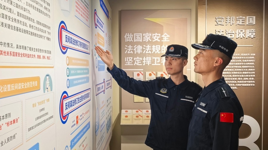 宣教中心由序厅和五个主题板块组成,分别是隐蔽战线的传承、总体国家安全观的思想引领、国家安全法律体系的保障、危害国家安全的典型案例以及人民防线建设。执法员们在讲解员的引导下,依次参观学习,通过图文展板、实物陈列、影像资料和沉浸式互动展陈,系统了解新时代国家安全的丰富内涵与实践要求。